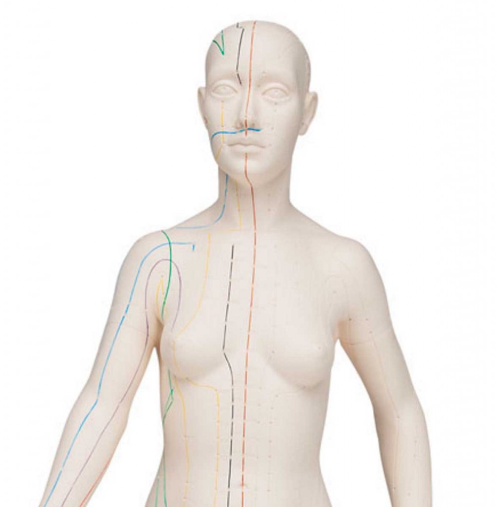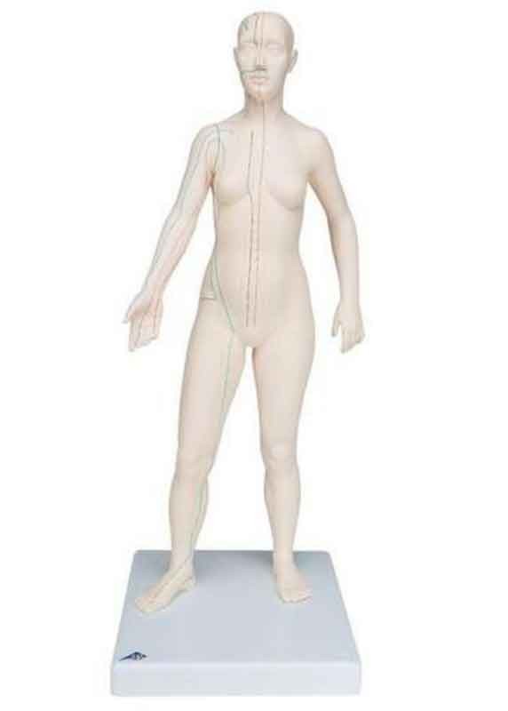 Akupunkturmodel med kvindelige former, sætter nye standarder i anvendelighed og fremtoning. Akupunkturmodellen er udviklet i samarbejde med europæiske akupunktører og er ca. 70 cm høj og indeholder 396 akupunkturpunkter. Alle meridianbaner er farvet individuelt i de 5 faser. Med vilje er den kinesiske navngivning på modellen udeladt for at gøre det lettere at identificere akupunkturpunkterne og øge simpliciteten.