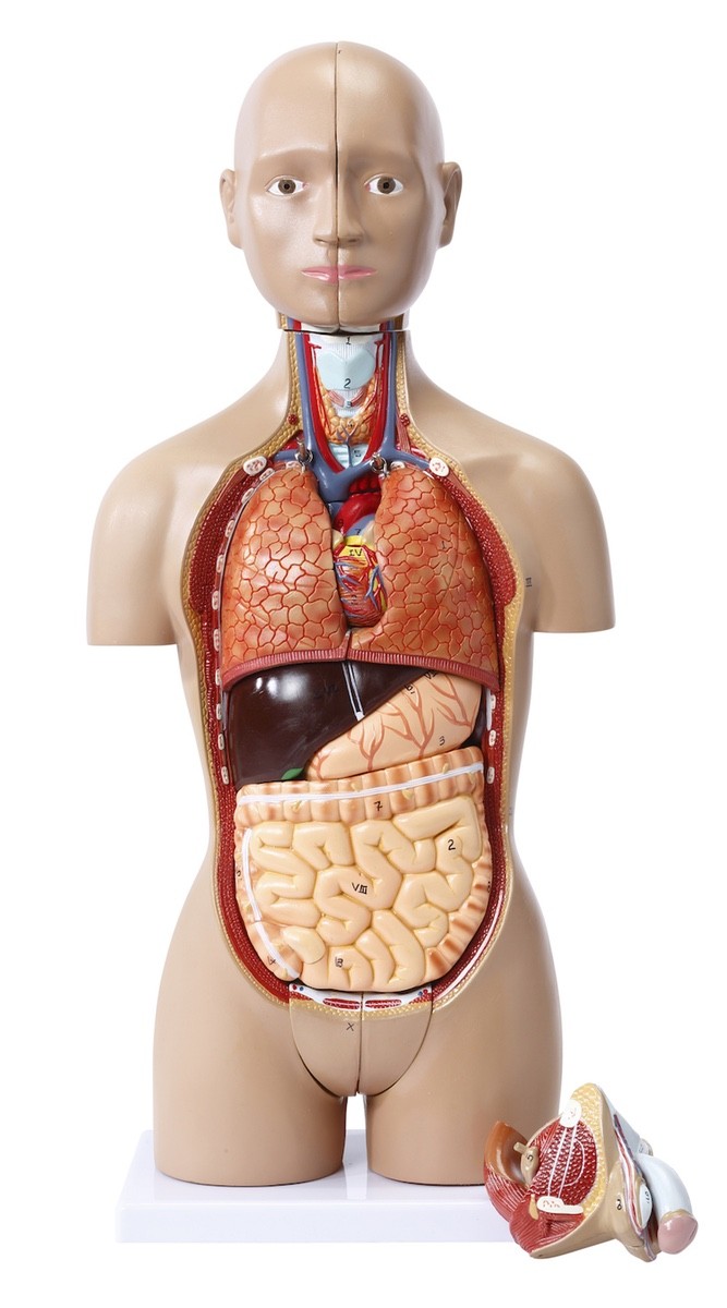 Den torso er ideel til klinikken, undervise børn, eller hvis du blot ønsker at spare plads i klasseværelset. Følgende dele kan fjernes:
