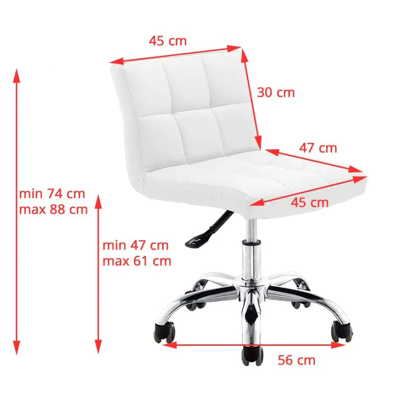 Klinistolder kombinerer komfort og moderne design. Det bløde sæde med dekorative syninger giver høj siddekomfort selv under længere arbejdssessioner, mens det ergonomiske ryglæn aflaster ryggen. Polstringen i slidstærkt øko-læder gør stolen nem at rengøre og holde frisk.