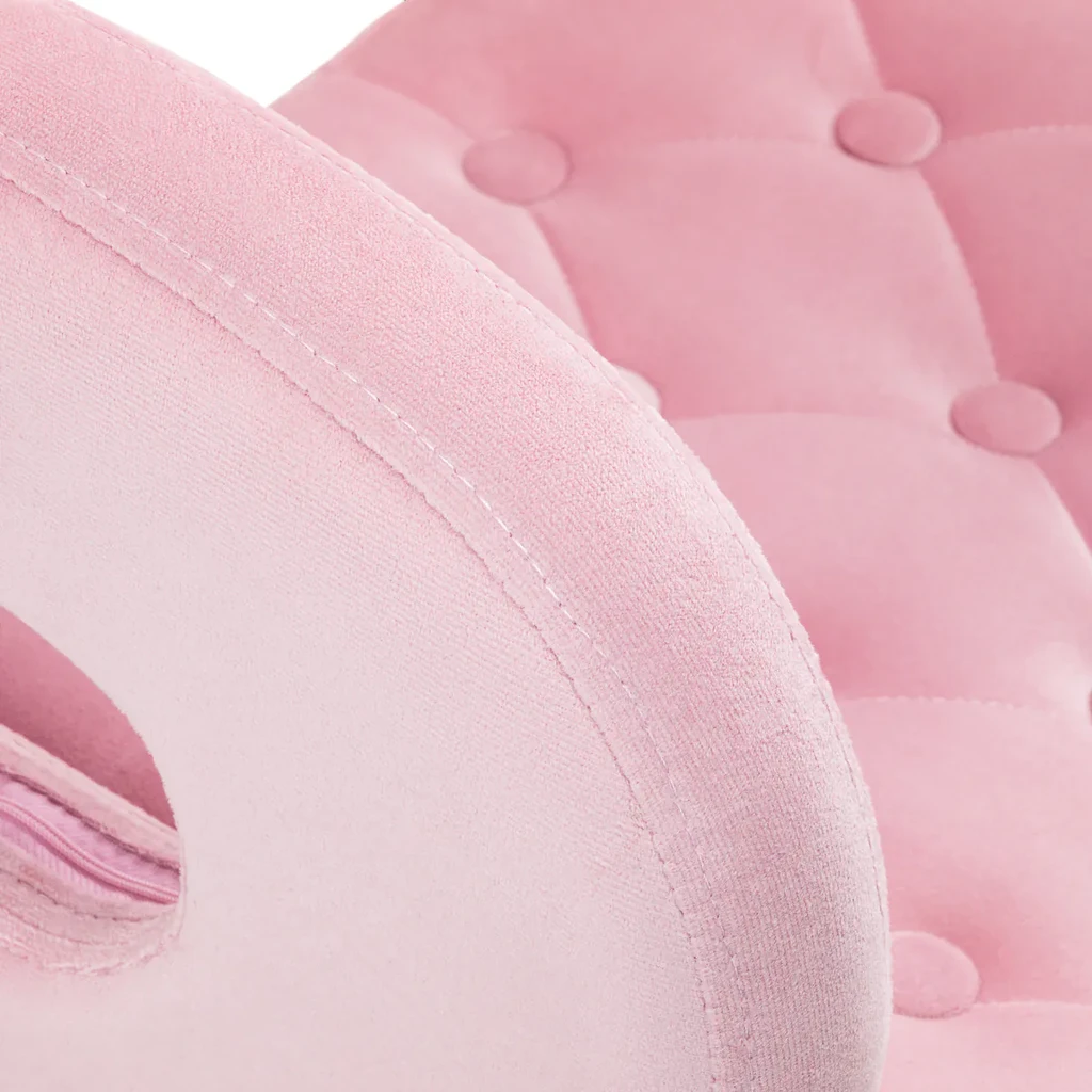 Giv din salon eller dit hjem et strejf af elegance med den luksuriøse QS-OF213G makeupstol i lækker pink. Betrukket med eksklusivt, blødt fløjl i sofistikerede sorte nuancer og med en ramme i en elegant guldtone, bliver denne stol både en praktisk og dekorativ detalje i rummet. Perfekt til professionelle miljøer som skønhedssaloner, neglestudier, kontorer og receptioner - men også lige så oplagt i hjemmets makeuphjørne.