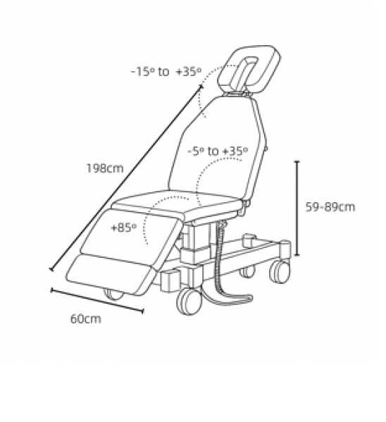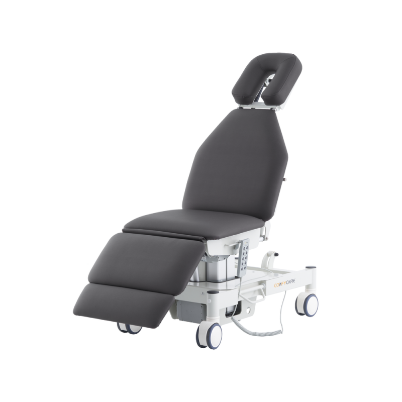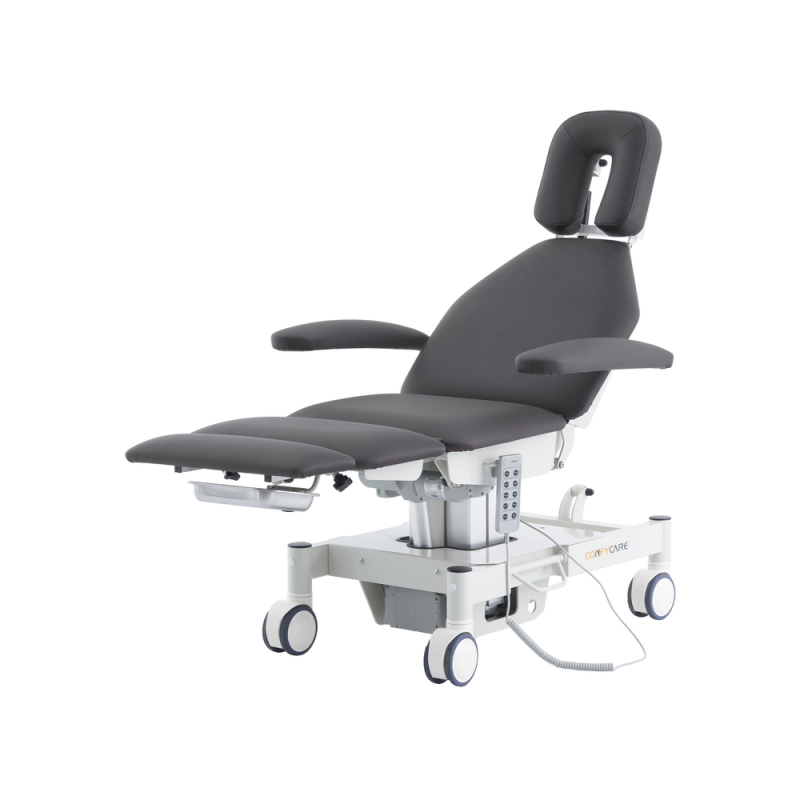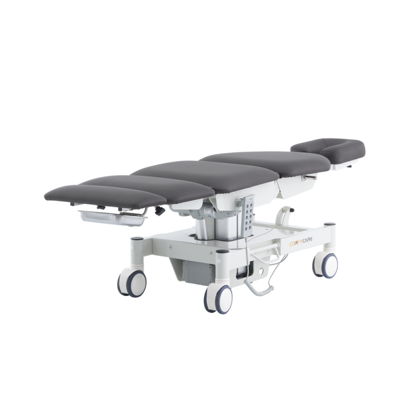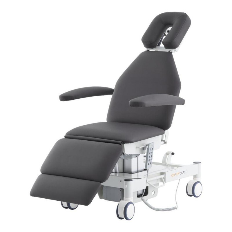 - Komfortabel hovedstøtte og polstrede armlæn for høj patientkomfort