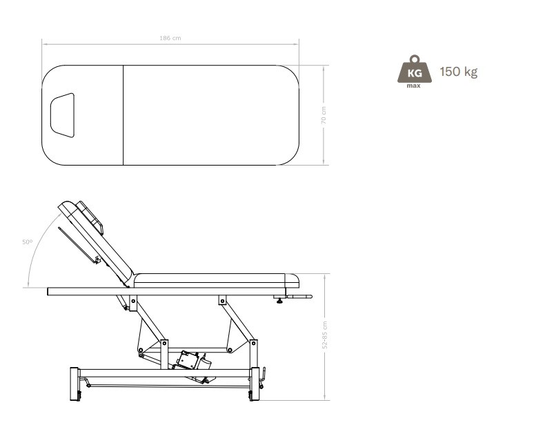 Prisbillig eksamen bænk 2 opdelt, justerbar i højden med 1 motor, ryglæn vinkeljusterbar ved hjælp af en gasløft.