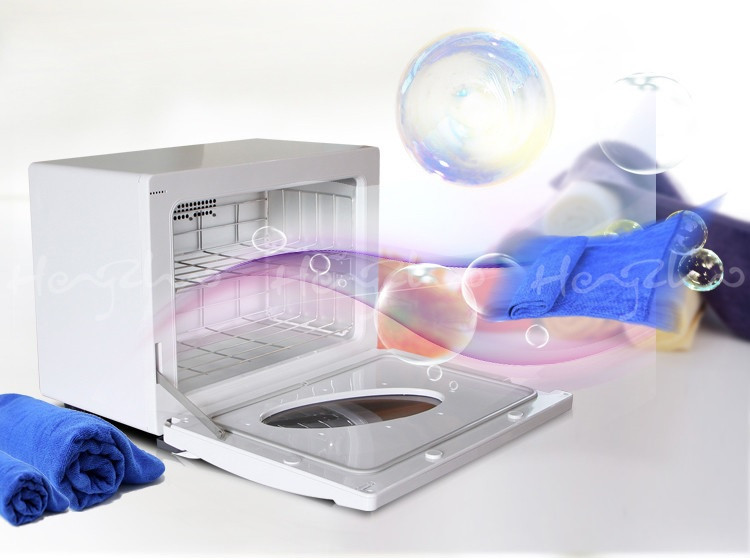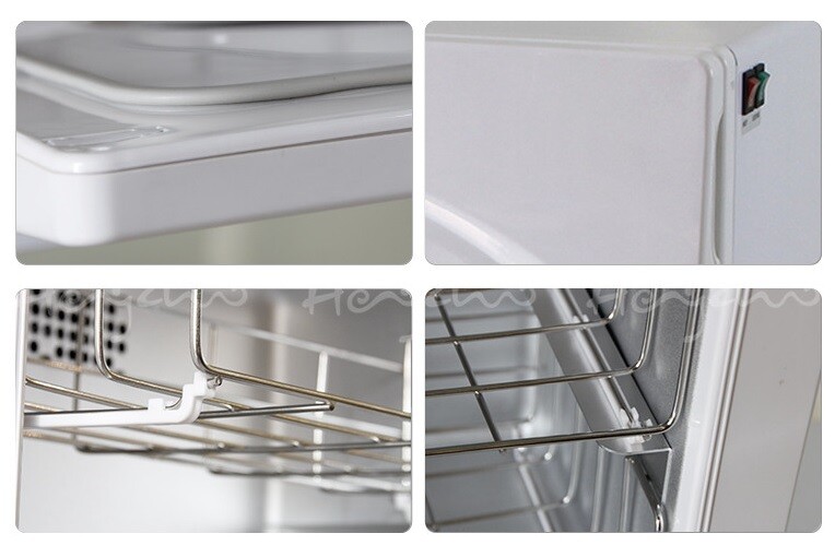 Håndklædevarmer med UV-sterilisator. Dobbelt beskyttelse mod overophedning. Separat tænd / sluk-kontakt til UV-lys og UV-lysbeskyttelse. Lysene tændes / lukkes, når døren åbnes / lukkes. Halvtransparente vinduer forhindrer UV-lys i at lyse igennem, mens de er gennemsigtige nok til at følge opvarmningsprocessen i enheden.